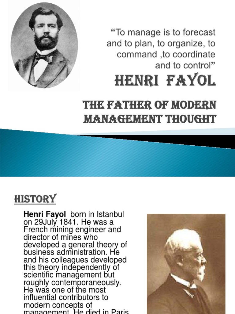 Henri fayol was a french mining executive, mining engineer, director and author of mines who introduced the general theory of business administration called the fayolism. He was a mining engineer in a french mining company and rose to the position. Somewhere managin, like a boss. Henri fayol, 1841 yılında i̇stanbul'da doğmuştur. Henri fayol's classical management theory, offers 14 principles of management, 5 functions of management, and 6 activities of industry. Henri fayol, a french engineer and director of mines, was born in a suburb of istanbul in 1841, where his father, an engineer, was appointed superintendent of works to build a bridge over the golden horn. He was born in istanbul, ottoman empire. Henri fayol's 14 principles of management for one of the earliest management theories. Esta teoría, conocida también como fayolismo en honor a su. Henri fayol was a modern management theoretician and founder of the 14 management principles and five functions of management. To manage is to forecast and plan, to organize, to command, to coordinate and to control. Henri fayol's management theory is a simple model of how management interacts with personnel. Babası i̇stanbul' galata köprüsünün mühendisliğini yapmıştır.